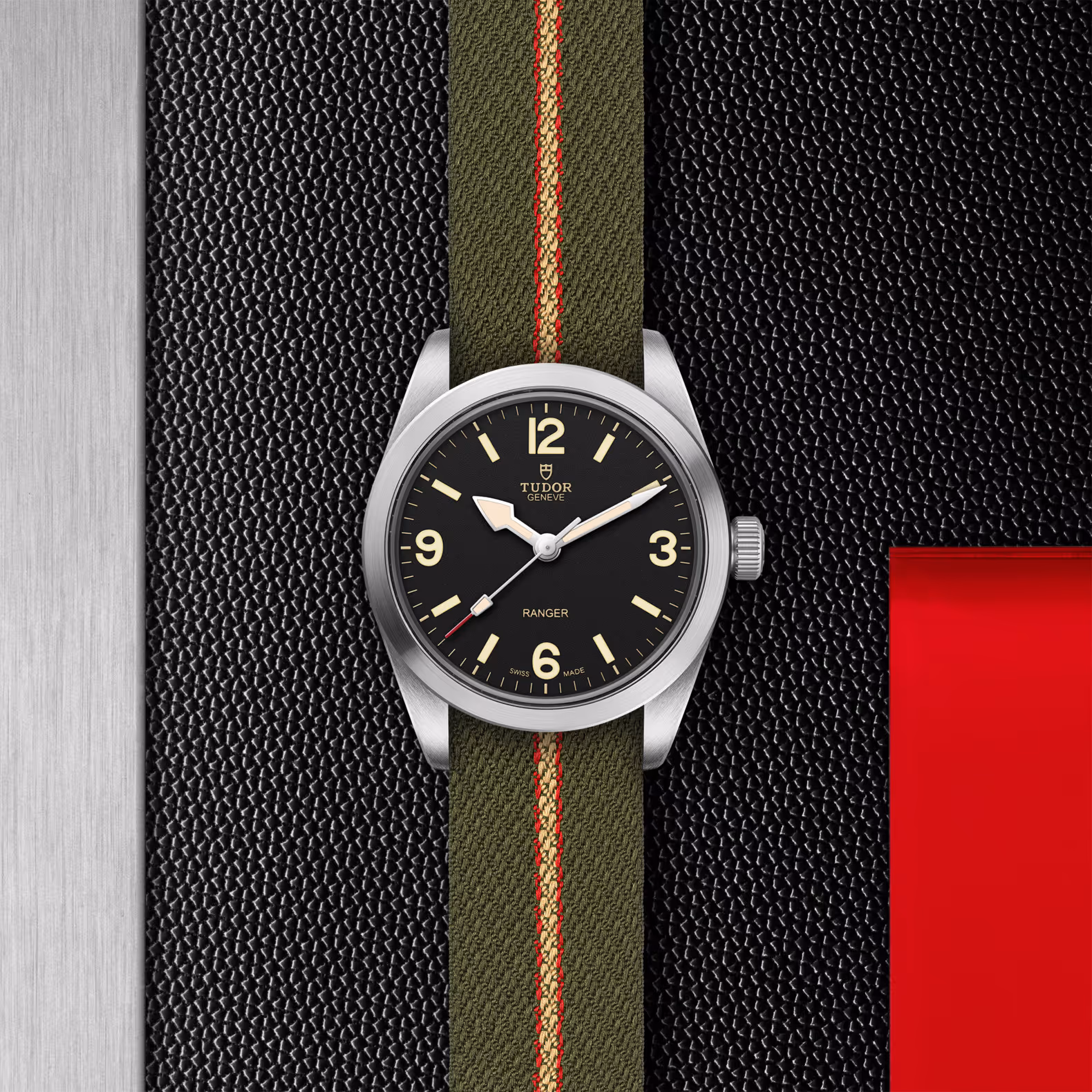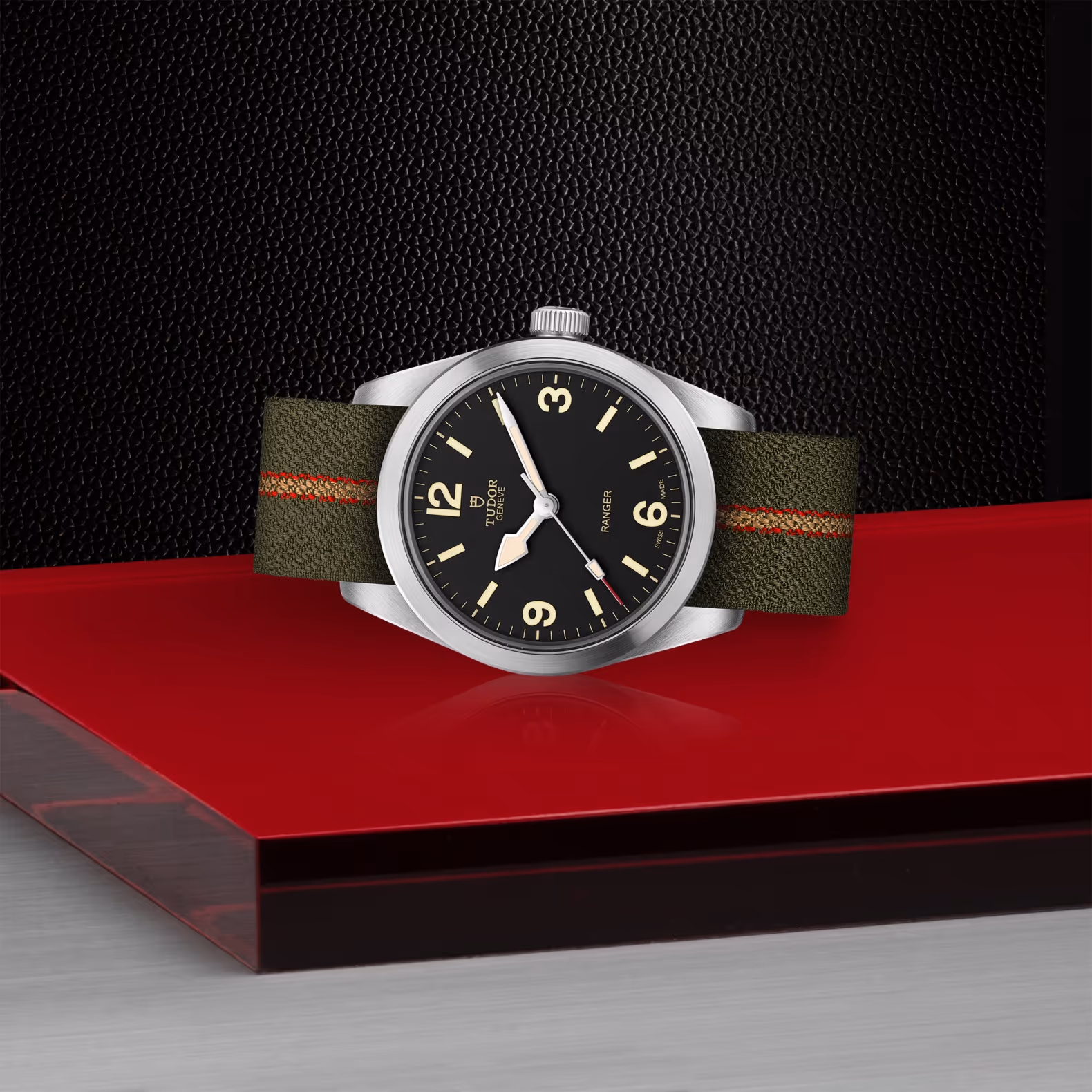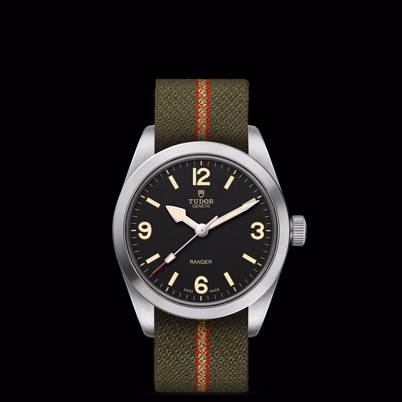 The Ranger model was launched to mark the 70th anniversary of the British North Greenland Expedition. It is a tool watch celebrating the spirit of this daring adventure, complete with Manufacture Calibre MT5402, a 39-millimetre case and a clasp with rapid adjustment system. The Ranger model respects the aesthetic standards established in the course of its history, especially its dial with Arabic numerals at 3, 6, 9 and 12 o'clock, whilst incorporating new state-of-the-art technical elements. It continues, within the TUDOR collection, the tradition of the expedition watch.