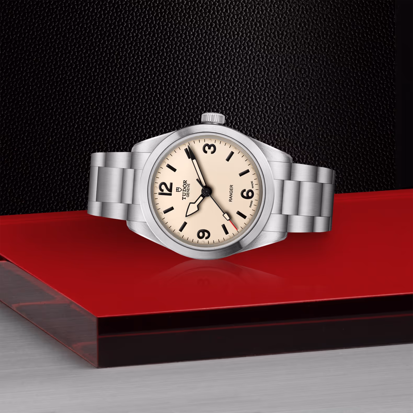 The Ranger model was launched to mark the 70th anniversary of the British North Greenland Expedition. It is a tool watch celebrating the spirit of this daring adventure, complete with Manufacture Calibre MT5402, a 39-millimetre case and a clasp with rapid adjustment system. The Ranger model respects the aesthetic standards established in the course of its history, especially its dial with Arabic numerals at 3, 6, 9 and 12 o'clock, whilst incorporating new state-of-the-art technical elements. It continues, within the TUDOR collection, the tradition of the expedition watch.